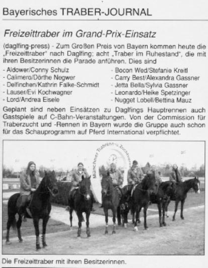 Hier in Daglfing war am 9.4.2000 unsere Premiere. Unser erstes Paradereiten.
